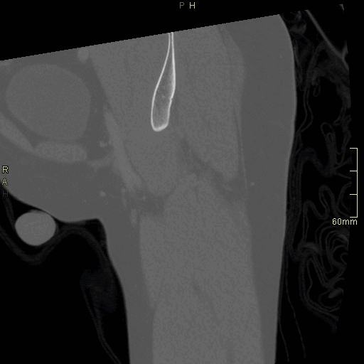 SCAN RANGE: Entire pelvis from iliac crest to below lesser trochanter (Multi-planar reconstructions only of affected hip).