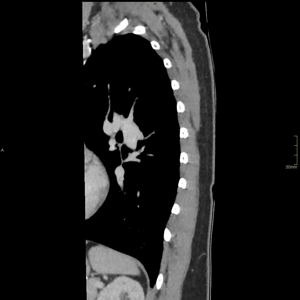 CT Thoracic Spine Contrast- Soft tissue window (sagittal)